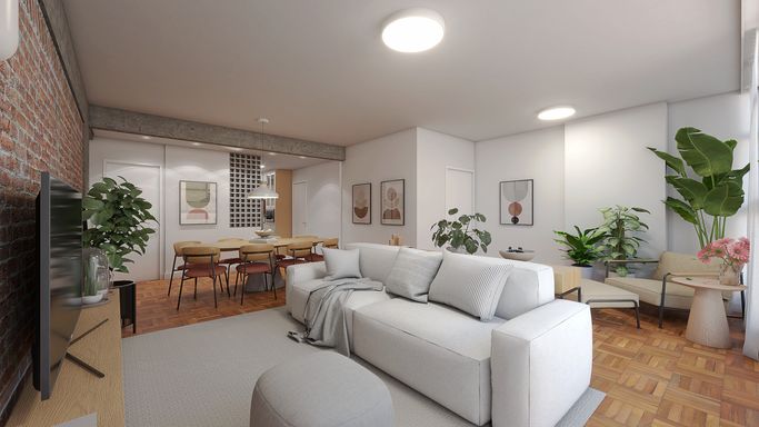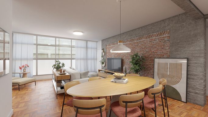 Ao lado do Shopping Higienópolis, esse prédio continua firme e forte, quase parado no tempo, com um hall interno imponente e aquele jardim lateral que dá um toque todo especial. O projeto do edifício é assinado pelo Victor Reif, e os interiores foram criados por Jorge Zalszupin. Agora, a nossa reforma veio com uma vibe moderna e impecável, feita em parceria com a arquiteta Cecília Hayashi. Cada detalhe foi pensado para valorizar os 98,15 m² desse apartamento, que tem 2 quartos (sendo 1 suíte), uma sala grande e integrada com a cozinha, e uma varanda super charmosa, acessível tanto da sala quanto da suíte. Tudo isso com vigas e pilares de concreto aparente, tacos originais lindos e uma curadoria cuidadosa nos acabamentos. A localização? Melhor impossível! Bem pertinho do Shopping e da animação de Santa Cecília, com seus bares, brechós e lojinhas cheias de charme. Então, não perde tempo! Vem logo conhecer essa joia de apê!