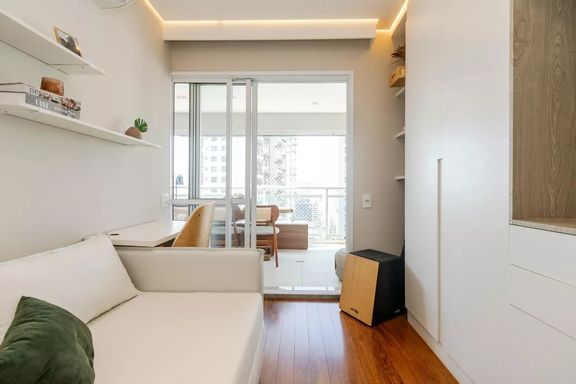 Apartamento Pronto mobiliado e decorado no Brooklin com 73m! Bom gosto e sofisticação rico em luz natural impecável.