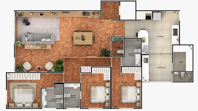 Com 165m² o apê oferece espaços generosos, sala ampla para dois ambientes, com piso de taco em mini parquet de ipê, que traz aquele charme acolhedor. Na área íntima são três suítes, incluindo uma master, além de lavabo, cozinha, despensa e área de serviços com banheiro, e para completar ainda temos duas vagas de garagem para estacionamento de duas SUVs, se for necessário.