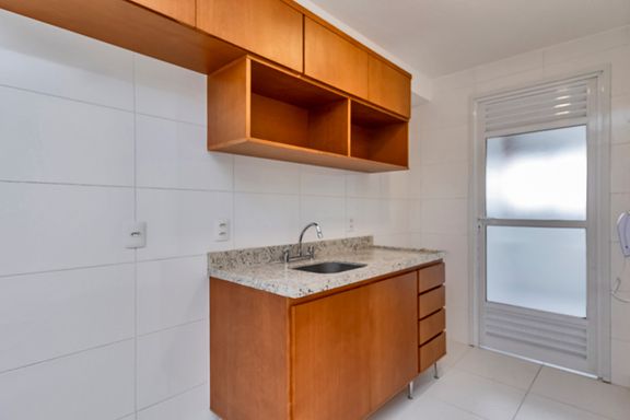 São 41 m² muito bem aproveitados: varanda charmosa, sala integrada, cozinha com armário, dormitório com marcenaria e banheiro completinho.