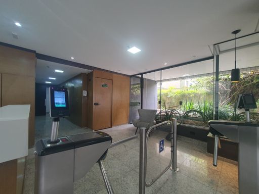 Sala em vão livre o que permite ter uma recepção ou modelar 2 salas para trabalho; 2 Banheiros; Copa; 2 vagas de garagem.