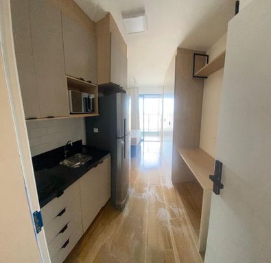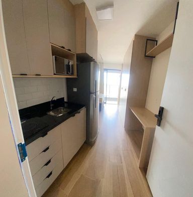 Repleto de armários e com geladeira, fogão e uma varanda pra ver o por do sol da cidade.